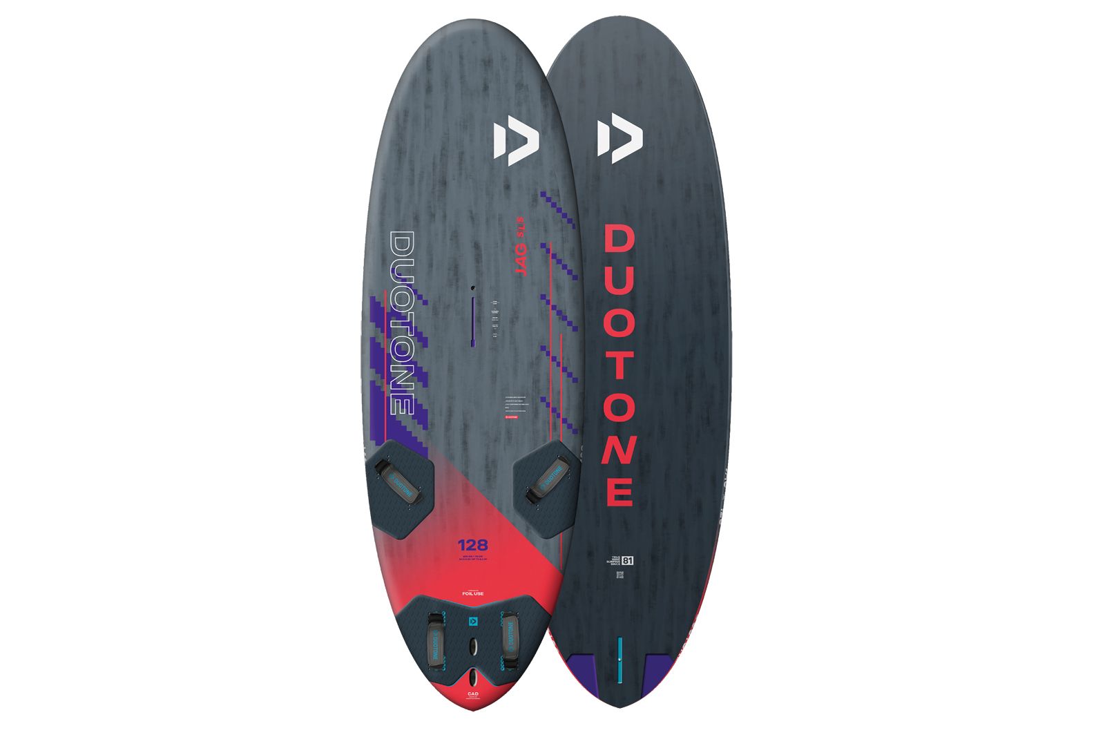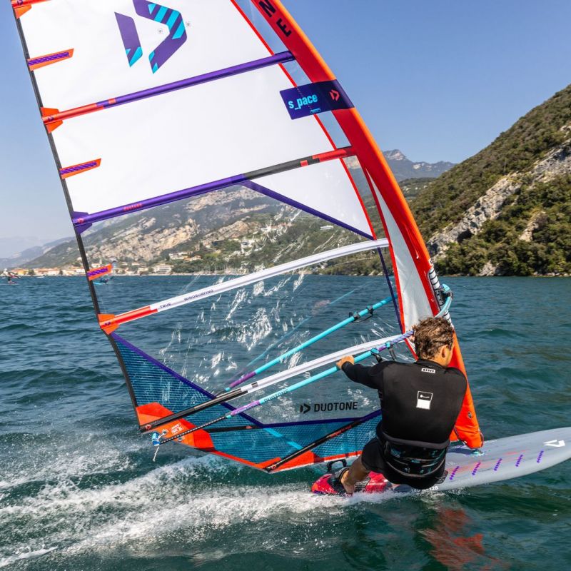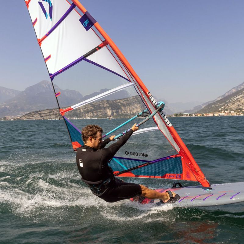 Positioniert wird auch der neue Shape unter Duotone zwischen dem mit noch mehr Komfort und weniger Vorwärtsdrang ausgestatteten Blast und dem reinrassigen Slalomboard Falcon Fin. Ein alternatives Finnen-Setup sorgt beim Jag SLS dafür, dass der Shape je nach Könnensstufe und Einsatzbereich entweder mit der klassischen Duotone Race-Finne komfortabel und fehlerverzeihend gefahren werden kann oder mit der Race D/Lab Finne aus der Schmiede der Hochleistungsfinnen Marke Finish Fins extrem nah an die Fahrleistung eines Falcon Fin gebracht werden kann. Dank der Inserts für eine optional weiter innenliegendere Fußschlaufenposition kann der Jag dabei auch weniger technisch gefahren werden, sodass auch Race-Einsteigerinnen und -einsteiger zunächst mit viel Fahrkomfort starten können, um sich langsam an die Außenposition heranwagen können, um den Topspeed zu erhöhen und das Fahr- und Racelevel weiter nach oben zu schrauben.