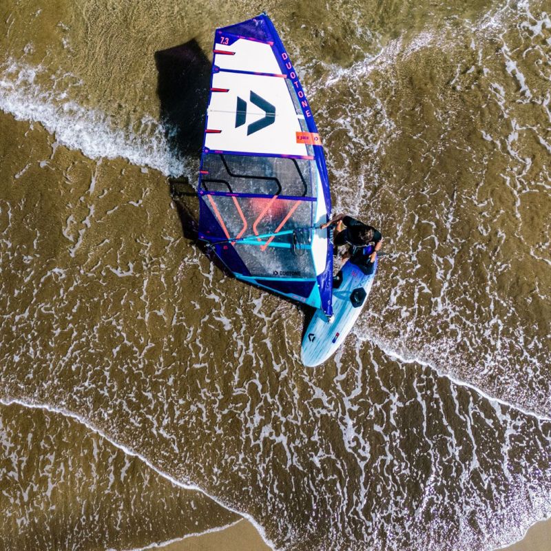 Drei neue längenverstellbare Hyper Cams 2.0 sollen dabei für einzigartige Druckpunkt- und Profilstabilität bei angenehmer Rotation sorgen. Die stark konisch zulaufende Masttasche im Aero Sleeve Design ermöglicht den idealen Übergang von der Mastvorderkante in das dünner gehaltene Segelprofil. Oben im Segel hingegen ist die Masttasche relativ eng geschnitten, nimmt weniger Wasser auf und erleichtert so das Freiwerden für schnelle Wasserstarts. Unterstützt wird dies vom sogenannten Luff-Lift-Design des Warp Race-Segels, das für zusätzlichen Auftrieb sorgt. Für den Foil-Einsatz gibt es beim S_Pace eine spezielle Öse am Achterliek, um das Segel aufrechter fahren zu können.