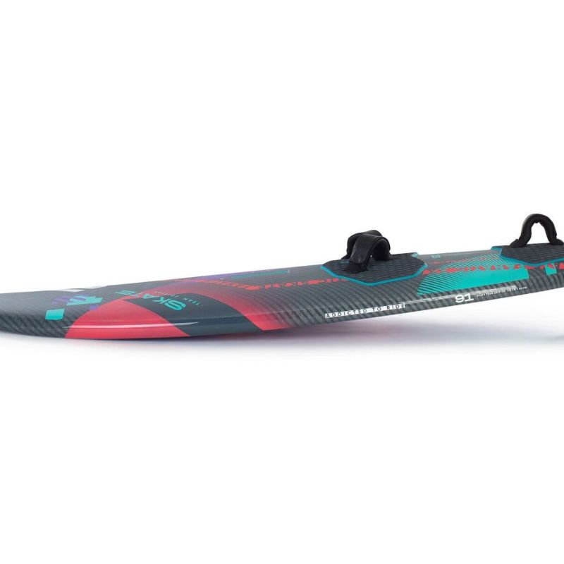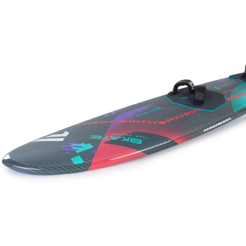 Bei Sliding Tricks sorgt die flache Nose des Shapes im Zusammenspiel mit dem voluminösen Heck dafür, dass auch Switch oder bei kleinen Windlöchern die Geschwindigkeit erhalten bleibt. Der Skate TE ist mit einer Power Box für maximale Haltbarkeit in flachen Gewässern ausgestattet und in allen Größen auch zum Foilen geeignet.