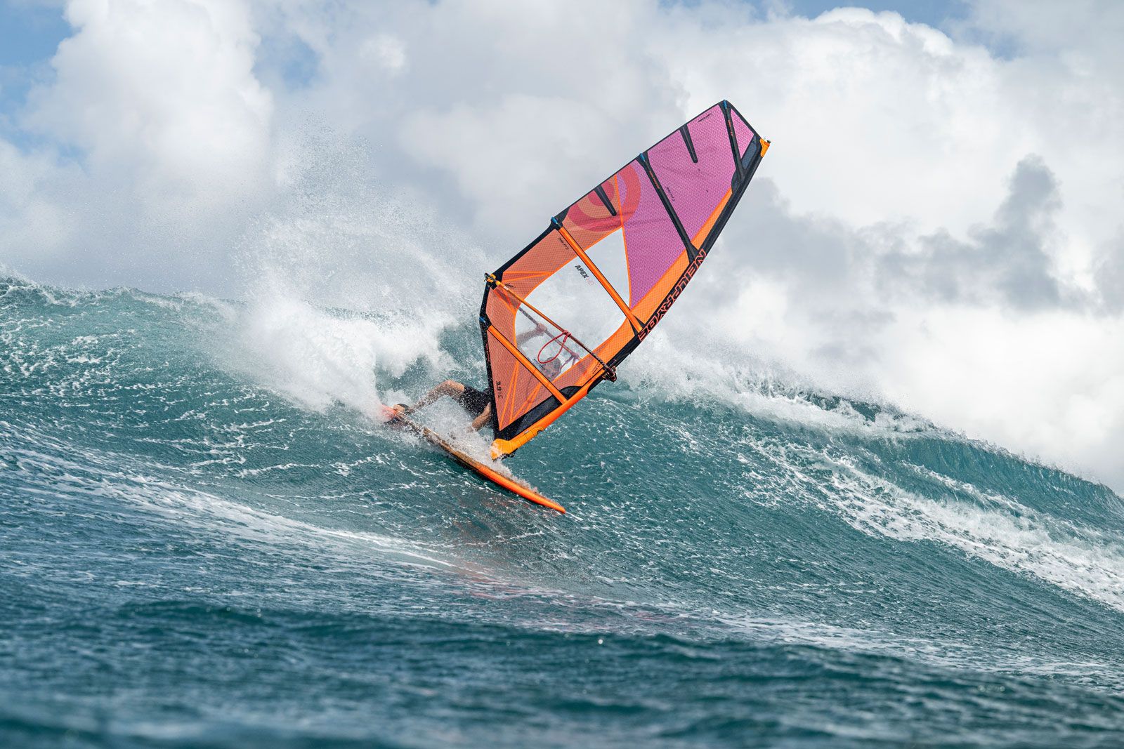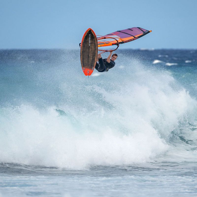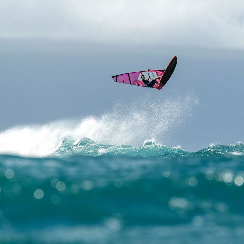 „Apex, unser neues 4- bis 5-Latten-Wavesegel, wurde entwickelt, um das Combat zu ergänzen - mit besonderem Fokus auf Sprungperformance, einen großen Windbereich und maximale Kontrolle, selbst bei starkem Überpower“, erklärt Robert Stroj das Designkonzept. „Trotz der zusätzlichen Power und Stabilität fühlt sich das Segel in der Welle extrem leicht in den Händen an, und die zusätzliche Kontrolle sowie das direkte Fahrgefühl haben es mir ermöglicht, bei Rotationsmanövern schneller zu drehen - besonders bei starkem Wind!“, freut sich Robby Swift über das neue Spielgefährt.