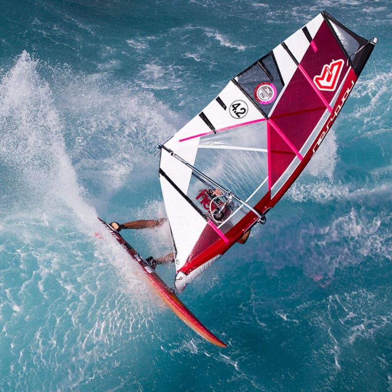 Das Top, so North Sails, arbeitet sehr aktiv und unterstützt damit den Vortrieb. Daher soll man getrost eine Segelgröße kleiner wählen können als bei vielen anderen Wavesegeln. Das gilt übrigens für nahezu alle Fahrer, egal welcher Gewichtsklasse. Die Segelgrößen reichen von 3.0 bis 6.7 qm, um eine möglichst große Bandbreite abzudecken. Für bestmögliche Druckpunktstabilität und Kontrolle sind bei den drei größeren Segeln fünf Latten verbaut. Der amtierende Wave-Weltmeister Víctor Fernández schwärmt von dem neuen Konzept: „Leicht und elastisch wie ein 3-Latter, aber Stabilität wie bei fünf Latten.“