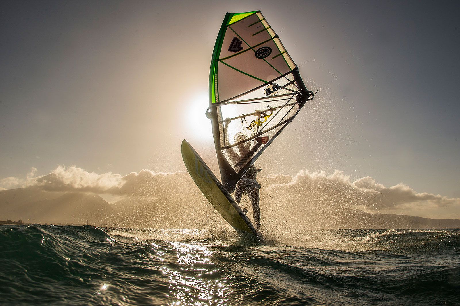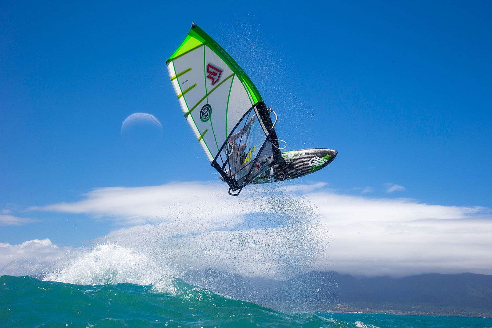 von Lars NiggemeyerDas Super Hero ist die Weiterentwicklung des Wavesegels Hero. Hersteller North Sails verspricht beherrschbare Spitzenleistung selbst in brutalen Revieren wie den Kanaren oder Südafrika, wo es bei viel Wind und grenzwertig überpowerten Sprüngen perfekt kontrollierbar bleibt. Andererseits beschleunigt es kraftvoll am unteren Windlimit, wie man es beim Down-the-Line-Abreiten auf Maui oder Mauritius braucht. Designer Kai Hopf hat dazu die Latte über der Gabel nach oben versetzt, um die Lücke zur Fusslatte wie bei einem 3-Latten-Segel zu vergrößern. Dieses „Free-Boom“-Concept sorgt für ein großartiges On/Off-Verhalten. Die lattenfreie Fläche unterstützt leichtes Anpumpen und bietet dem Wind im unterpowerten Bereich keinerlei Widerstand beim „Ausfüllen“ des Profils, entsprechend einem 3-Latten-Modell. Um trotzdem hohe Stabilität bei Starkwind und gleichmäßige Leistungsentfaltung zu ermöglichen, verbaut Kai Hopf direkt oberhalb der Gabel zwei Mini-Battens sowie das für North typische Hollow-Lower-Leech. Außerdem stabilisieren aus dem Schothorn laufende radial verlaufenden Load Stripes insbesondere den lattenfreien Bereich und sorgen für gleichmäßige Kraftverteilung. Ergebnis ist ein 4-Latten-Wavesegel mit breiter Windrange, welches maximale Low-End-Power mit Kontrolle und Profiltreue kombiniert.