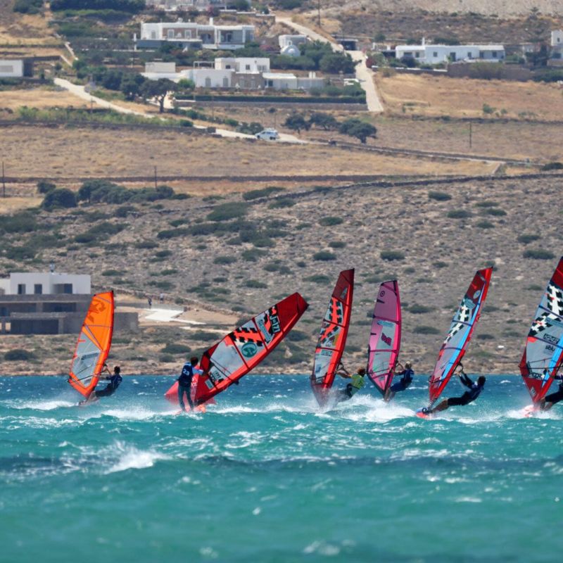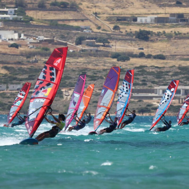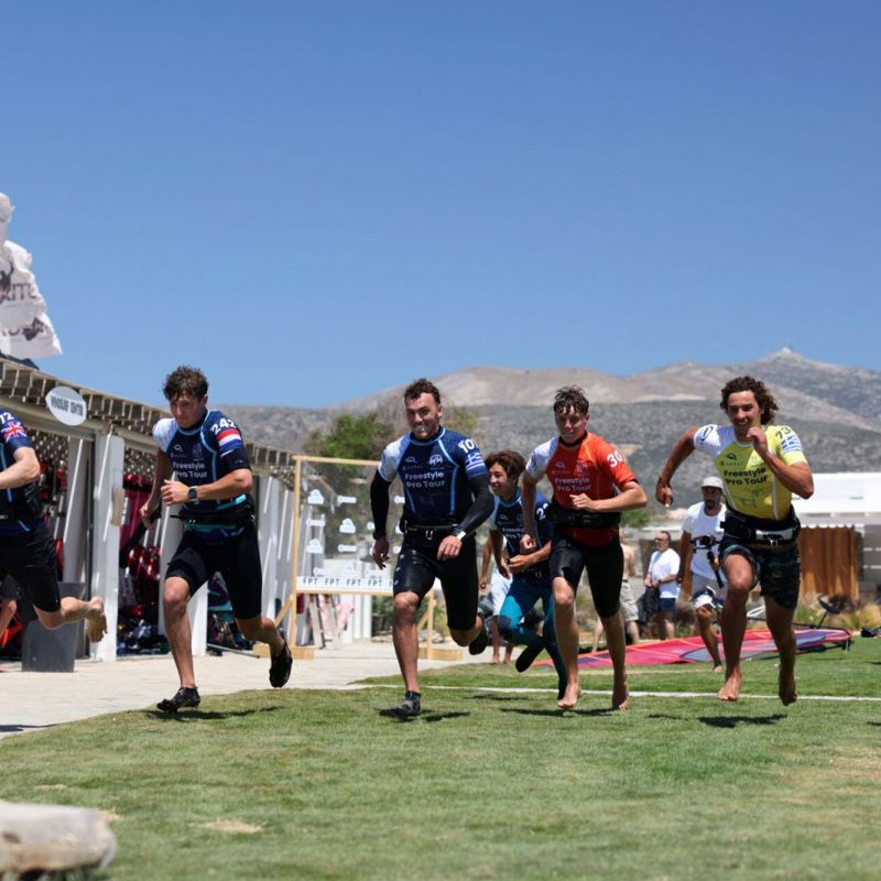 Nach Abschluss von drei Ausscheidungsrunden ging es in die Finalrunde. Adam Sims, Yentel Caers und Lennart Neubauer qualifizierten sich. Es war ein knappes Rennen: Adam Sims wurde Dritter, Yentel Caers Zweiter und Lennart siegte schließlich einmal mehr, da er als einer der wenigen Fahrer ein 5,2er-Segel aufgezogen hatte - eine kluge Entscheidung, da Geschwindigkeit hier oberste Priorität hatte. Für morgen sieht es wieder gut aus - und der Plan sieht vor, noch unerwartetere und spannendere Formate durchzuführen.