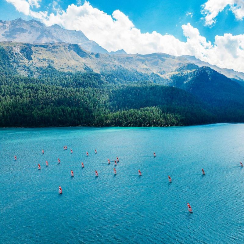 Der Marathon, der sich durch eine Dauer von etwa einer Stunde auszeichnete, stellte eine besondere Herausforderung dar. Aufgrund der Größe des Silvaplanersees erforderte das Rennformat fünf Runden um den See, die einen erheblichen Teil des Gebiets abdeckten. Der Marathon ist für den „Rabbit-Start“ bekannt. Ein über den See sausendes Boot markiert die Startlinie und verlangt den Teilnehmerinnen und Teilnehmern alles ab.