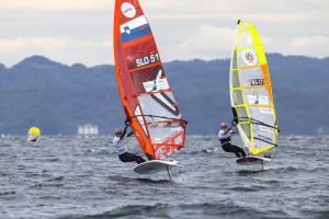 von Sven BlockLina Eržen lieferte sich unerbittliche Fights mit Justine Lemeteyer beim PWA Worldcup 2023 in Japan (Foto: PWA/John Carter).