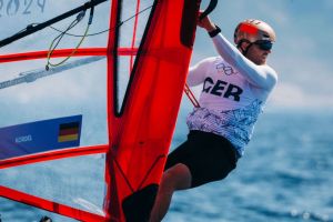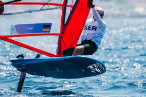 von Sven BlockUnter schwierigen Bedingungen bereiteten sich die Athletinnen und Athleten am zweiten offiziellen Tag auf die iQFOiL-Wettkämpfe vor. Erst gegen 13 Uhr beschloss Éole einen leichten thermischen Wind von 9 bis 10 Knoten zu erzeugen. Das Windfenster sollte nur kurz reichen, aber es konnten zwei Rennen bei den Damen und ein Rennen bei den Herren durchgeführt werden.