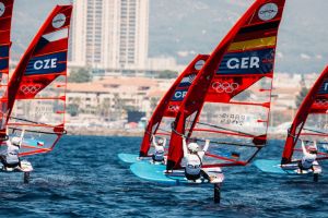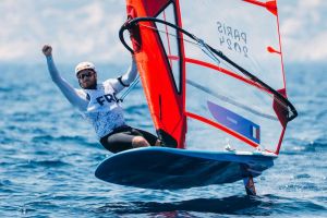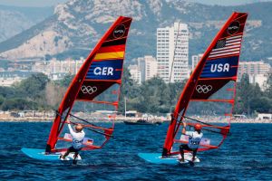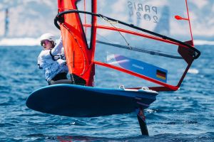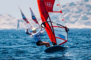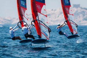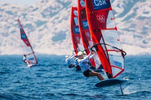 Spannender Start in die iQFOiL-Rennen bei den Olympischen Spielen. Emma Wilson und Nicolas Goyard setzen sich nach zwei bzw. einem Rennen an die Spitze.