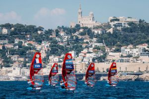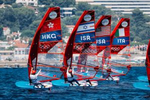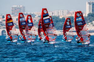 Die Britin Emma Wilson, eine der Top-Favoritinnen in Marseille, ließ sich von den Bedingungen nicht beirren und begann die Spiele mit einem Laufsieg und einem zweiten Platz hinter Pilar Lamadrid aus Spanien im zweiten Lauf. Pilar Lamadrid zeigte eine bemerkenswerten Willen und erholte sich nach einem gänzlich holprigen Start im erstes Rennen schnell. Das Podium des Tages wurde von Marta Maggetti aus Italien und Maria Belen Bazo German aus Peru komplettiert, die beide den Start in die ersten beiden Rennen sehr gut meistern konnten. Sharon Kantor wurde im ersten Rennen disqualifiziert und im zweiten Rennen Dritte. Theresa Marie Steinlein liegt nach den zwei Rennen mit einem dritten und einem elften Platz aussichtsreich an fünfter Position.