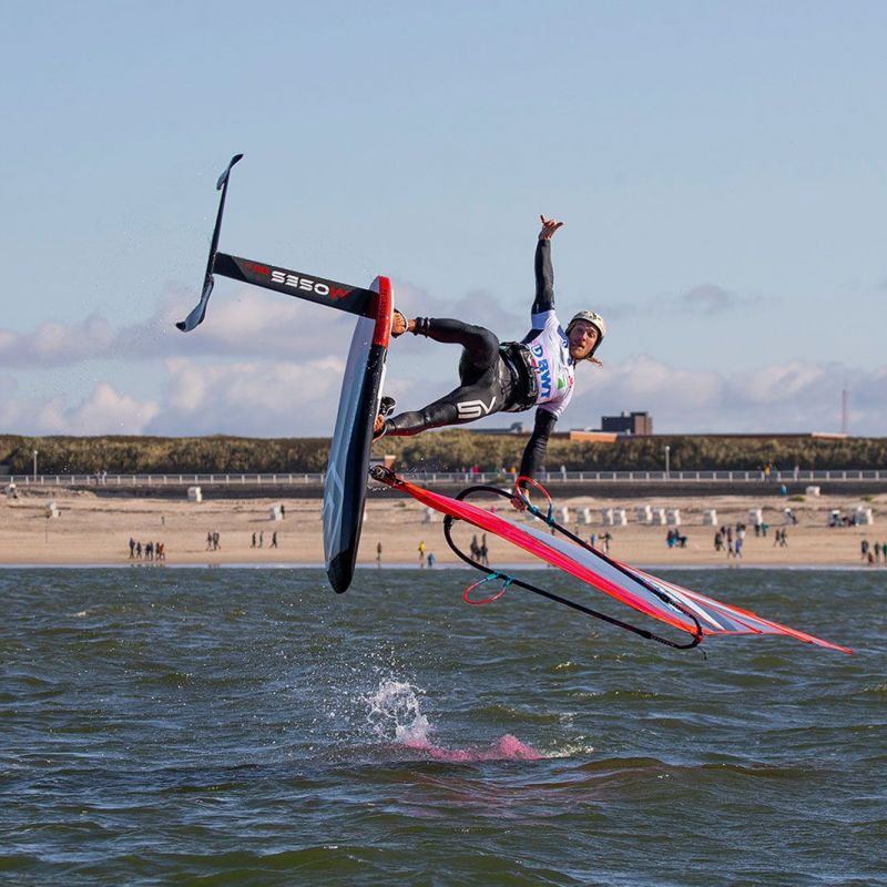 Da kann ich dir nur beipflichten. Ich hatte eine Phase, da tat mir nach fast jeder full power Freestyle Session ein Körperteil weh. Aber das ist irgendwie besser geworden. Ist das Pumpfoilen der perfekte Ausgleich zum Freestyle-Windsurfen? Wie oft kommst du überhaupt mit dem Freestyler mit Finne aufs Wasser?