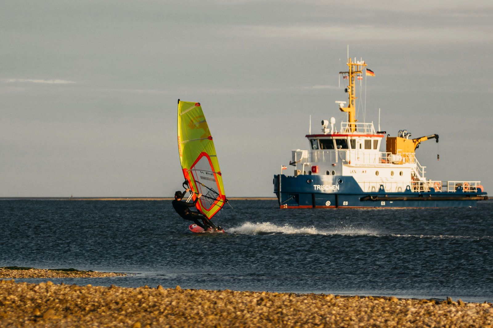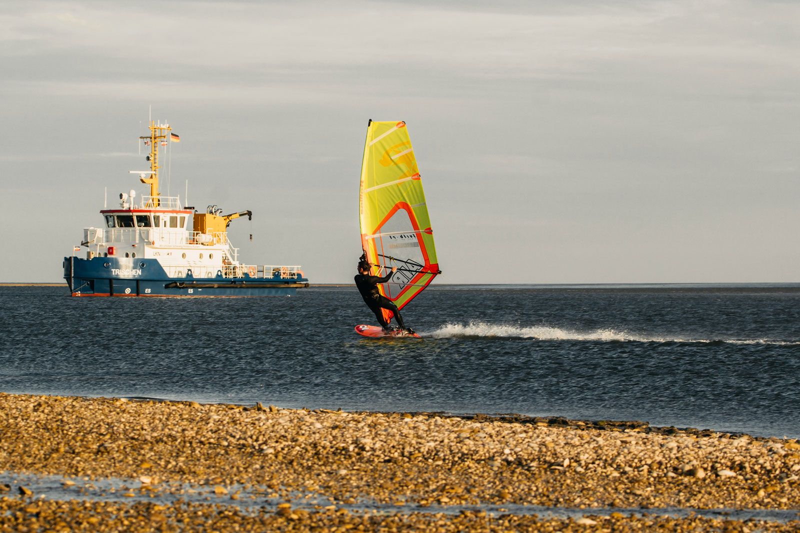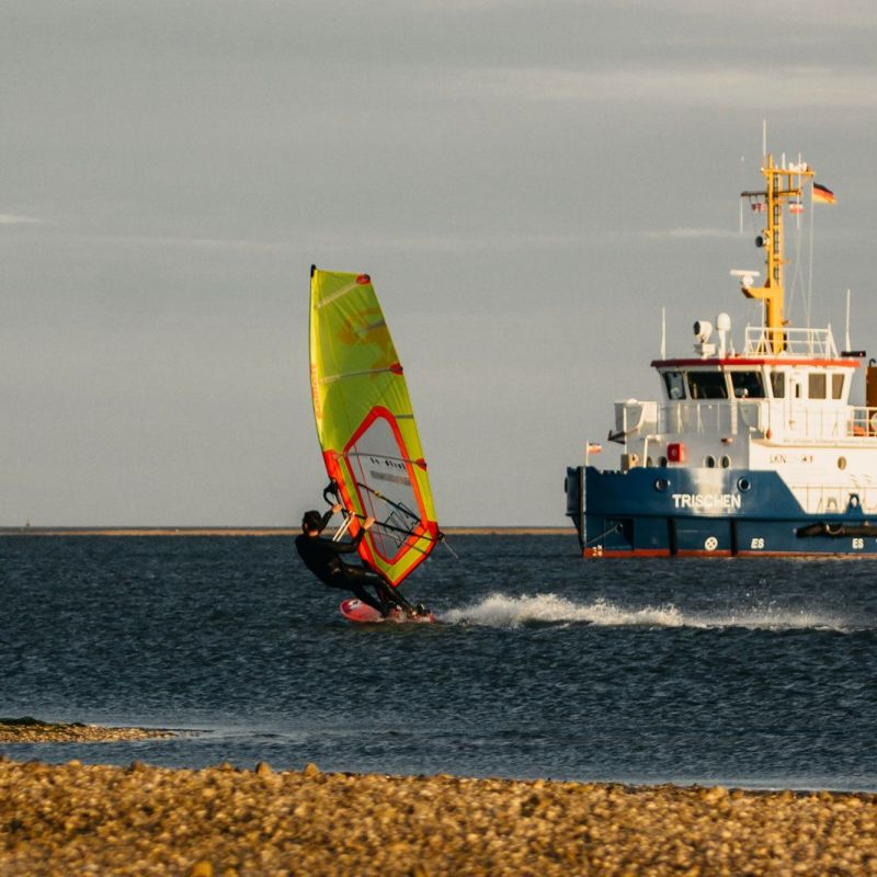 Heiligenhafen für Freestyle-Wave: Hier kann man entspannt Parken, es herrscht eine angenehme Atmosphäre an Land und es laufen nicht zu krasse, geordnete Wellen. Dahmeshöved ist aber mein Lieblingsspot an der Ostsee, obwohl sich die Parksituation dort deutlich verschlechtert hat. Die Parkwiese darf nicht mehr benutzt werden. Es ist jetzt ein größerer Aufwand an den Spot zu kommen. Und dann gibt es noch Lemkenhafen. Das ist für Freestyle auch echt gut. Das Wasser ist ziemlich glatt und man kann überall stehen. Einzig die Finnen leiden unter dem niedrigen Wasserstand. Nach dem Surfen gibt es dann noch eine Fischstulle aus der Aal-Kate. Das ist dann die perfekte Stärkung für den Rückweg.