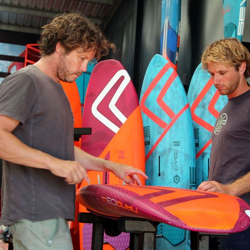 Alle Mitarbeiter sind begeisterte Windsurfer und auch die Jungs aus der Produktion sind oft auf dem Wasser. Ich denke, das ist unsere Hauptmotivation, dass wir die Verbesserung am Material machen, um auch selbst noch mehr Spaß auf dem Wasser zu haben. Wenn ein Segel oder mittlerweile auch Board gut ist, dann wird manchmal nur das Design verändert. Bis zuletzt bin ich sieben Jahre lang das gleiche Waveboard gefahren, weil es für mich einfach perfekt funktioniert hat.