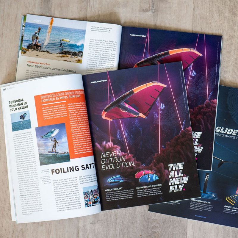 Ich wollte das einfach schon immer machen - diese ganzen coolen Einspieler auf Eurosport oder MTV, die Anzeigen von F2 und Neilpryde! Eigentlich habe ich davon geträumt, der Windsurfer in den Filmen und Magazinen zu sein, aber das konnte ich durch mangelndes Fahrkönnen nicht erreichen. Am Computer war ich erfolgreicher. Da hab ich teilweise Anzeigen mit mir selbst nachgebaut. Oder einfach meine superschlechten Forwardloops zwei bis drei Meter höher gephotoshopped und solchen Blödsinn. So kann man sich auch Träume verwirklichen. Ein wenig zumindest (lacht).