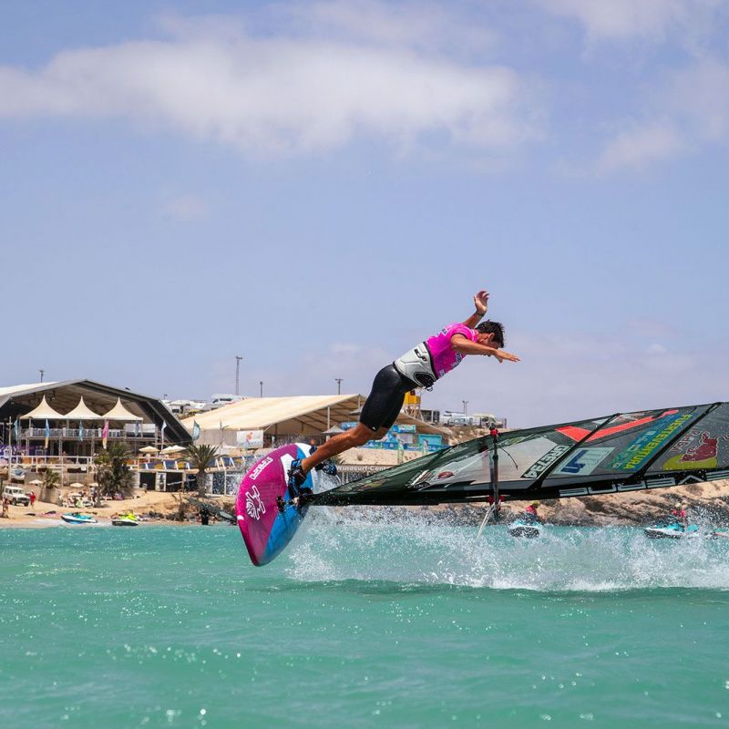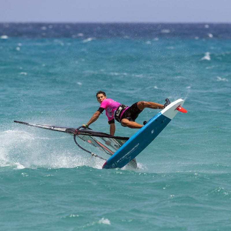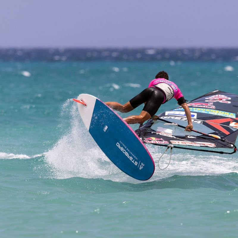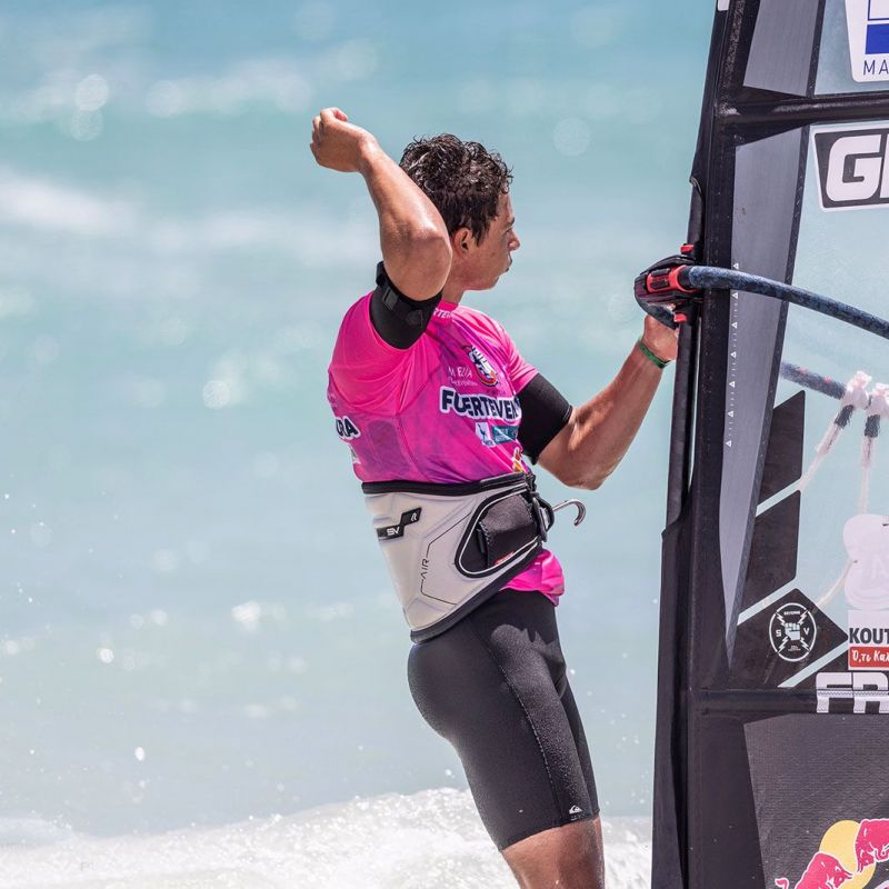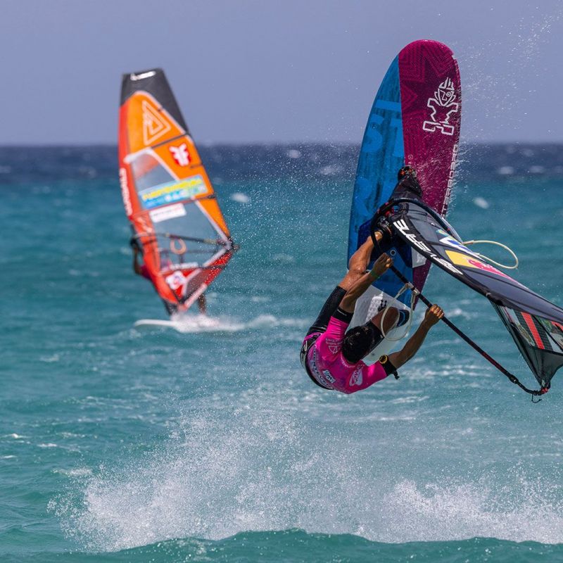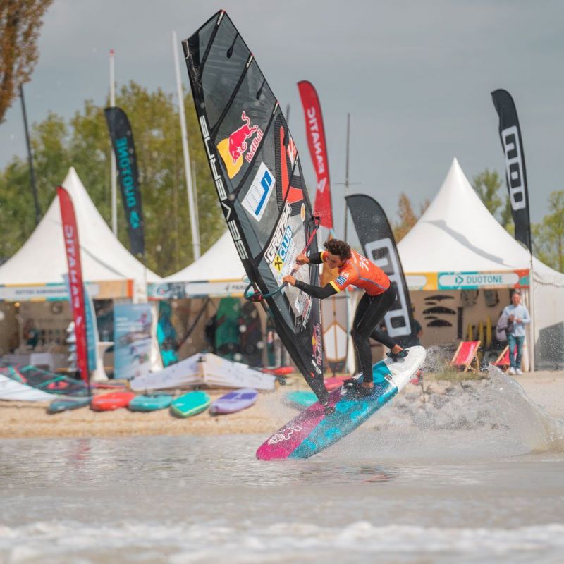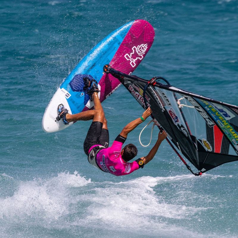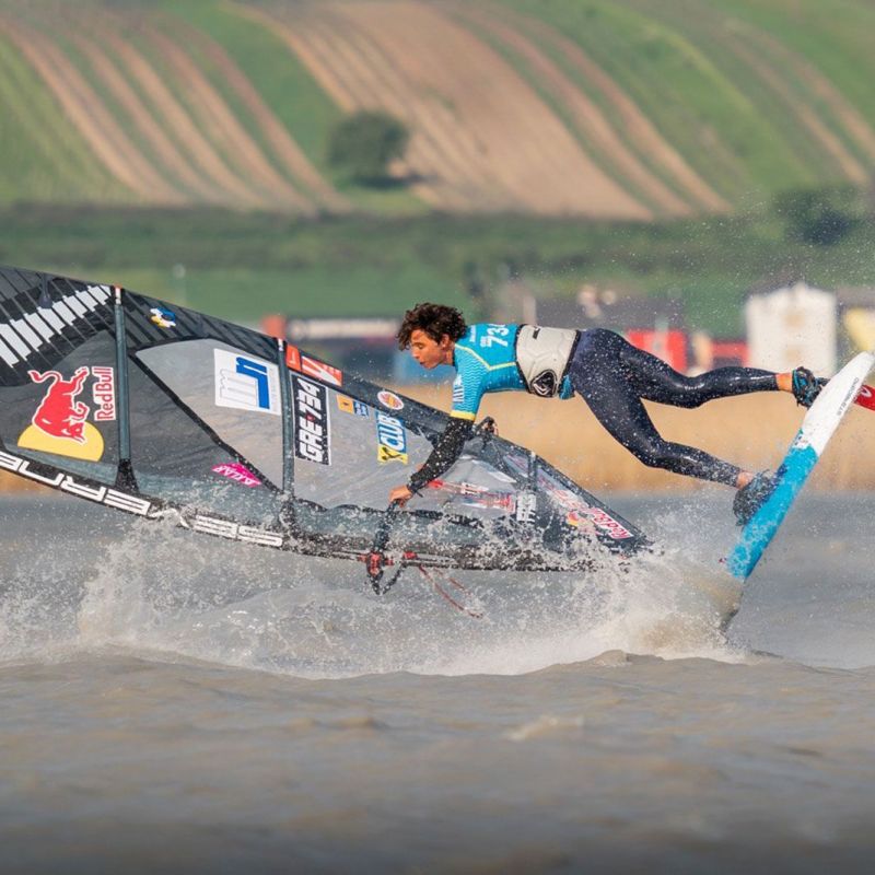 Ja, genau, das nennt man „Tapering“, also man reduziert bewusst ca. zwei Wochen vorher sein Krafttraining, um dann voll erholt in den Wettkampf zu starten. In dieser Zeit lege ich dann meinen vollen Fokus auf das Windsurfen.