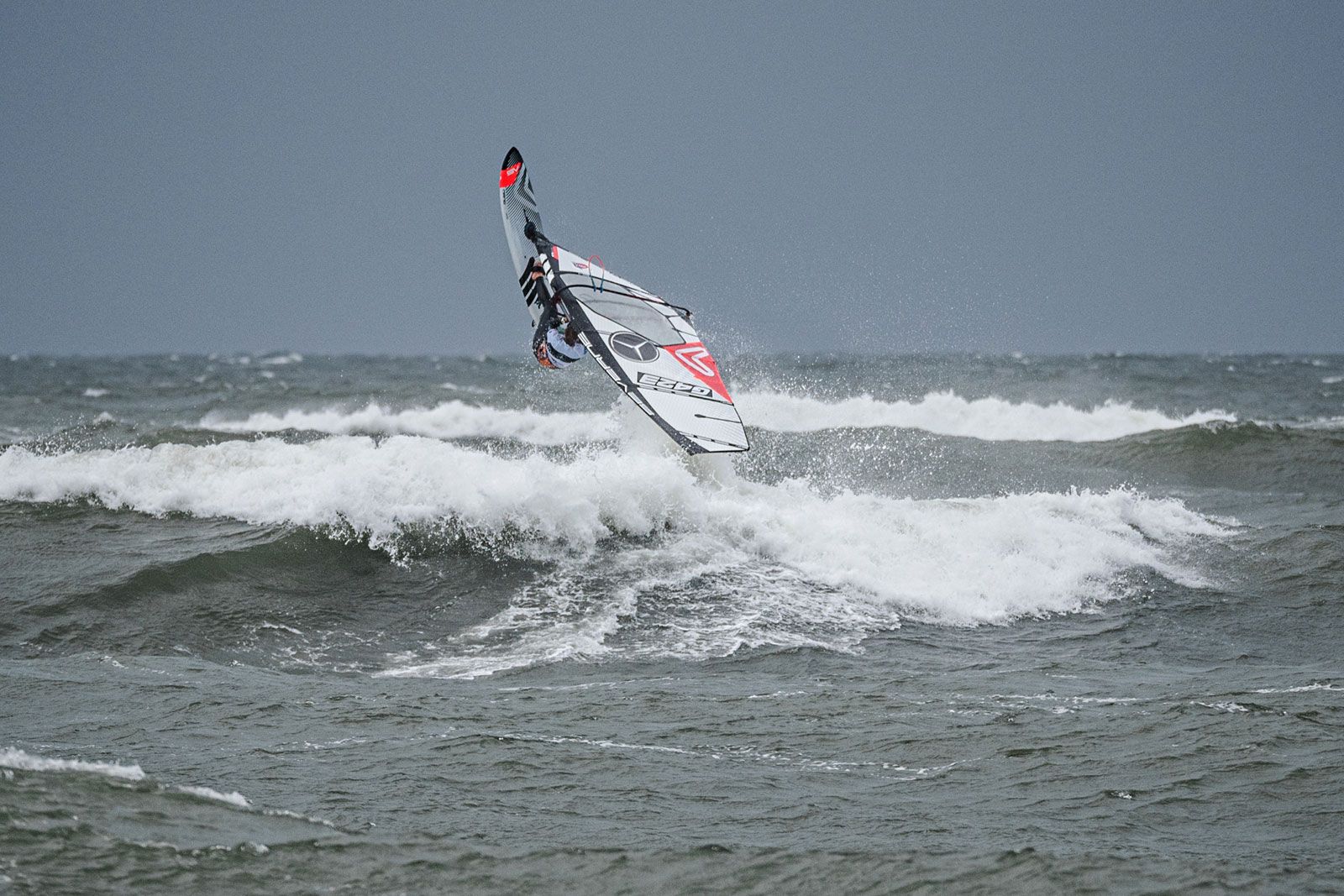 Man weiß vor Westerland nie, was einen erwartet. Der Wind kann in Orkanstärke aus allen Richtungen kommen, genauso wie die Wellen. Der Shorebreak ist heftig, Sylt ist einfach ein unberechenbarer und sehr anspruchsvoller Spot. Im Wettkampf ist alles möglich, bis hin zum Materialbruch.