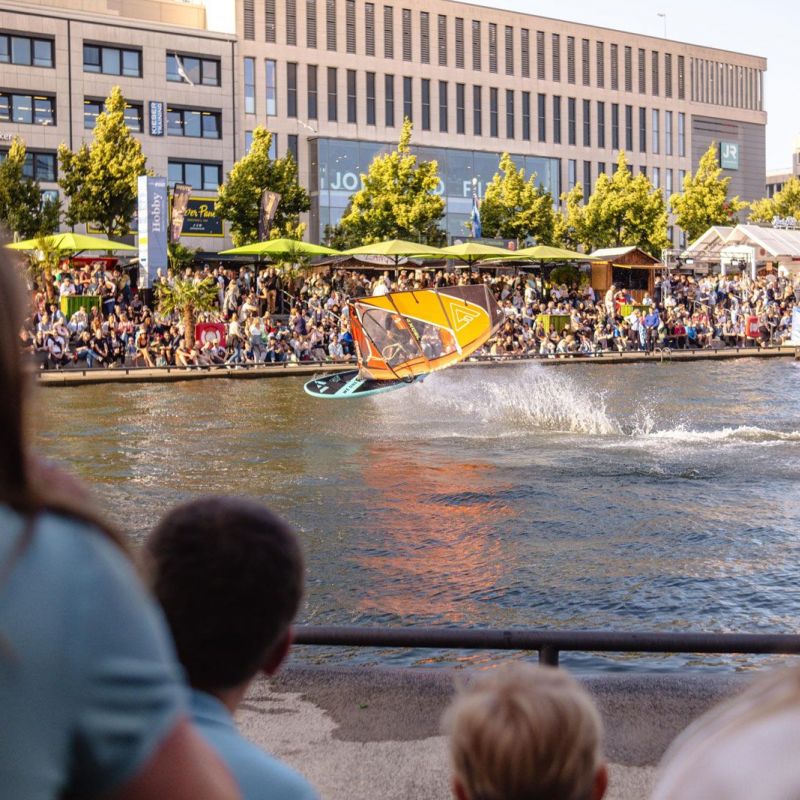 Gut, im April bin ich aus Australien zurückgekommen. Dann habe ich das Sommersemester erst einmal in Kiel verbracht und habe mich vor allem wieder auf mein Studium konzentriert. Trotzdem war natürlich viel los. So war ich zum Beispiel beim Surffestival unterwegs. Das ist jedes Jahr ein Highlight. Dieses Jahr leider ohne Wind, aber es war trotzdem wieder cool alle zu sehen und Tow-in vor so vielen Zuschauern zu zeigen, hat auch wieder Spaß gemacht. Dann gab es noch die Kieler Woche mit der Winch-WM, wo wir in der Kieler Innenstadt innerhalb von ein paar Metern angezogen werden und dann Moves zeigen konnten. Das hat zwar nicht viel mit Windsurfen zu tun, macht aber trotzdem Spaß.