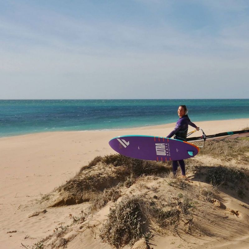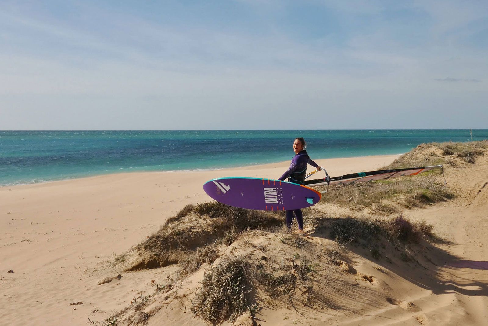 María Andrés liebt ihren nomadischen Lebensstil als Windsurfing-Profi und Autorin von Travel Stories. Die Pandemie-Einschränkungen zwangen sie, eine Pause einzulegen und an der Küste von Cadiz, Südspanien, zu bleiben. Sie hat ihre Heimat schon immer sehr geschätzt - für die Bedingungen, die Natur, das Wetter, die Kultur und die Vibes. Das gilt jetzt mehr denn je.