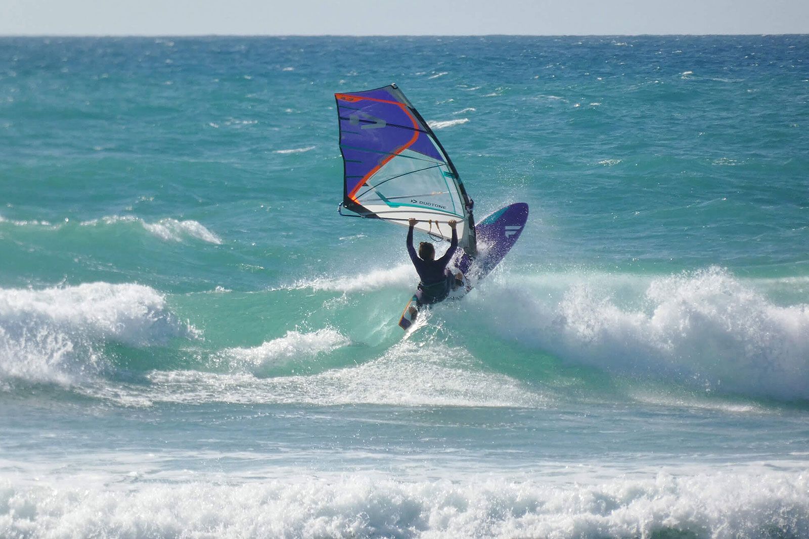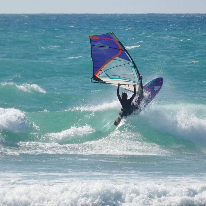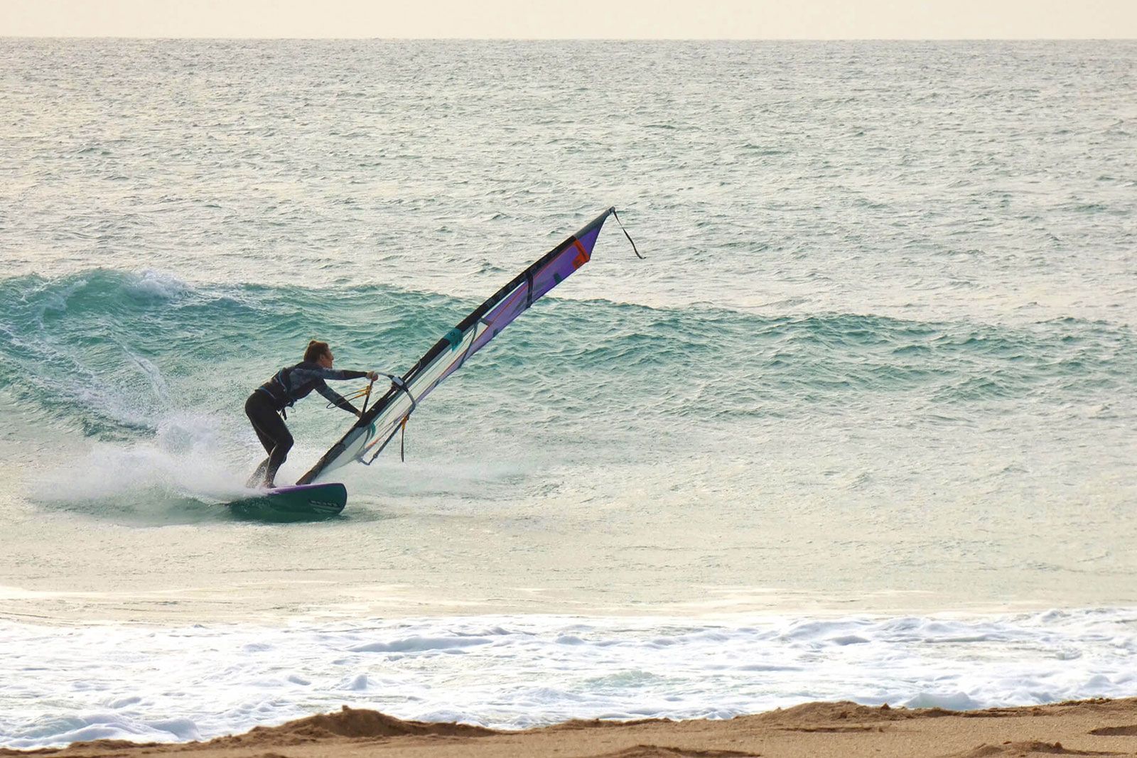 Wir waren drei Monate lang eingeschlossen. Und als wir endlich aus dem Haus konnten, durften wir immer noch nicht Auto fahren, sondern nur zu Fuß zu den Spots gehen. Zu anderen Zeiten bestand die Einschränkung darin, dass wir unser Gebiet (5 km Radius) nicht verlassen durften, aber trotzdem das Auto benutzen konnten. Am Strand an dem wir wohnen, gibt es starke Strömungen und Shorebreaks, deshalb sind wir hier nie gesurft. Unsere üblichen Spots sind nur fünf Minuten mit dem Auto entfernt, aber zu Fuß mit der ganzen Ausrüstung dorthin zu kommen war unrealistisch. Wir begannen, an Tagen, an denen wir normalerweise weiter weggefahren wären, an unserem Heimatstrand zu Windsurfen. Wir fanden heraus, dass wir in einem Radius von fünf Kilometern jede Menge Optionen und wirklich erstaunliche Bedingungen haben, die mit fast jeder Wind- und Wellenrichtung funktionieren! Ich kannte viele der Spots in der Umgebung, aber wusste nicht um ihr volles Potenzial.