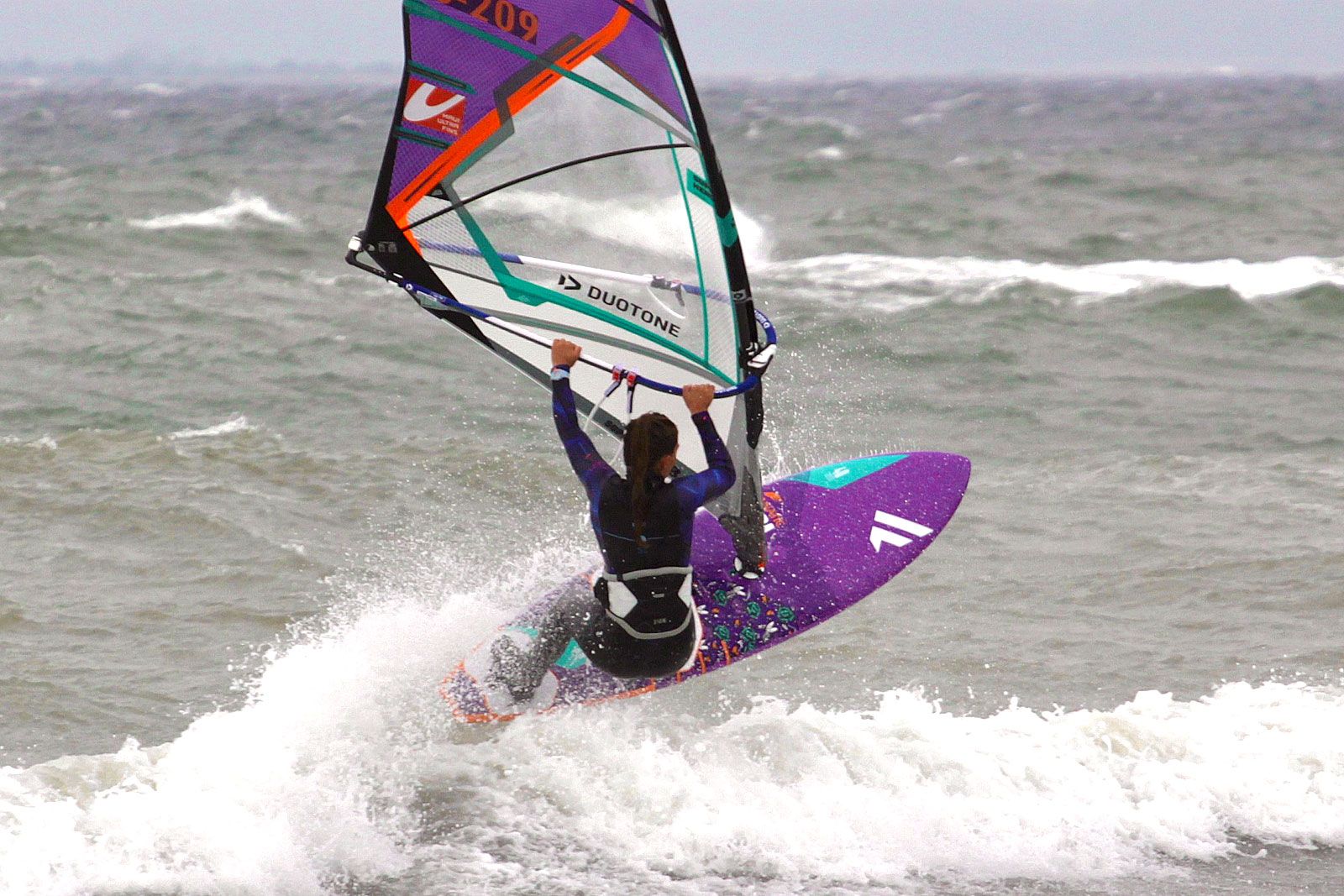 Ich finde im Wettkampf gibt man immer 120%. Mein letzter Wettkampf in Dänemark, die Danish Open, war bei Starboardtack-Bedingungen, wo ich so gut wie kein Manöver konnte. Einen Tag vorher habe ich angefangen Backloops bei dieser Windrichtung zu trainieren, bin aber nicht weit gekommen. Im Wettkampf aber habe ich einen Backloop so knapp wie sonst noch nie gelandet. Das hat mich selbst sehr überrascht und ich war sehr glücklich darüber. Bei dem Wettkampf bin ich dann auch schließlich Erste geworden (grinst).