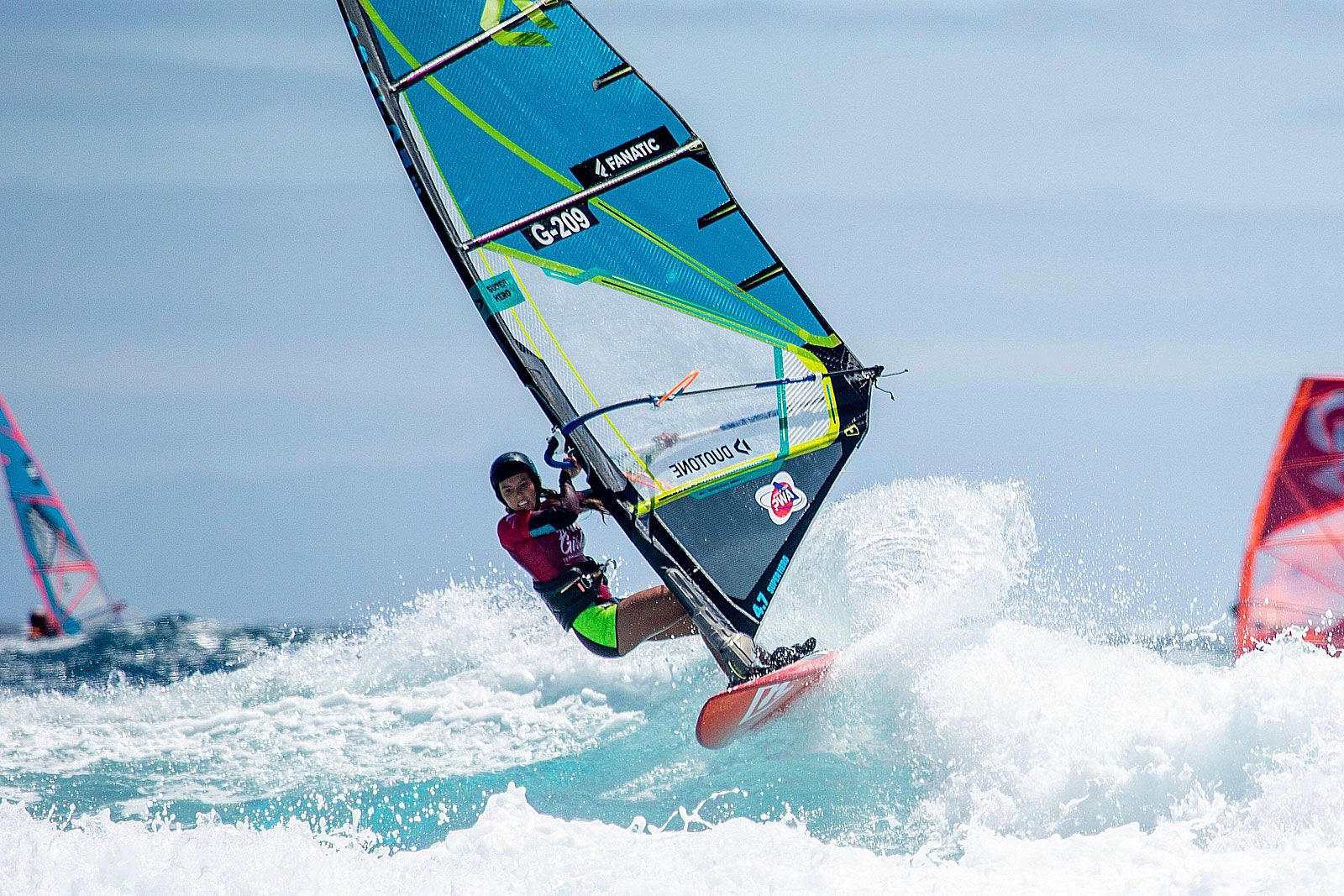 Danke! Ja, der Sommer war geil! Line und ich hatten zusammen ein Zimmer direkt in Pozo und mussten uns, wenn Wind war, einfach nur unser Package zusammenbauen und 100 m zum Aufriggplatz gehen. Unser Tag sah so aus, dass wir immer zwei Sessions hatten, mit Ess- und Siestapause dazwischen. Mein Highlight war, meinen 18ten Geburtstag mit Wind, Sonne und den ganzen Leuten verbringen zu können.