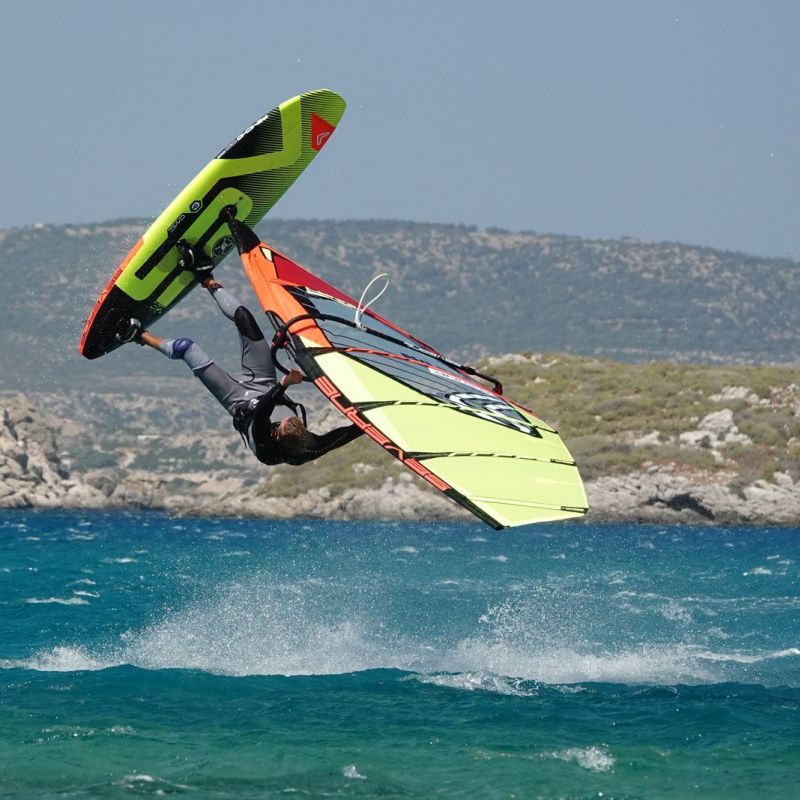 Mir ist nicht bewusst, dass mich in der Szene so viele kennen. Aber wenn du das sagst, glaub ich dir das einfach mal (lacht). Freut mich natürlich sehr, das zu hören. Bei den Events und dem Tour-Lifestyle gibt es ein großes Problem und das ist der finanzielle Rahmen. Zu mehreren Events im Jahr reisen verursacht extreme Kosten und wenn man das selber finanzieren muss, überlegt man es sich wirklich zweimal, ob es das wert ist. Über den Sommer mehrere Monate auf Karpathos zu verbringen ist für mich nur möglich, weil ich dort arbeite und mir so den Aufenthalt finanzieren kann. Wenn ich von dort aus zu einem Event reise, frisst das einen großen Teil meines Einkommens, was mir dann im Winter nicht zur Verfügung steht, um einen Trip zu starten. Es ist also ein ständiges abwägen, ob es das wert ist und was mir wichtiger ist. Im Endeffekt komm ich dann meistens zu dem Schluss, das Geld lieber zu sparen und damit dann wohin fahren zu können und mit Freunden einfach nur Spaß auf dem Wasser zu haben. Neue Moves zu lernen, diese auf Video zu bekommen und mit anderen zu teilen, das bringt mir am meisten Freude. Ehrlicherweise muss ich schon sagen, dass mir Contests nicht so wichtig sind. Ich bin kein kompetitiver Typ.