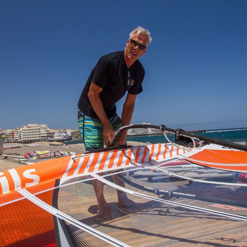 In den 70ern arbeitete ich in verschiedenen Yacht-Saillofts in den USA und nähte Windsurfsegel für mich selbst. 1980 baute ich dann Custom-Segel für Racer, wie Ken Winner und andere, die zu diesem Zeitpunkt von Neilpryde gesponsort wurden. 1982 holte Neilpryde mich dann nach Hongkong, um dort Segel zu designen. Das war eine sehr interessante Zeit! Zwei Jahre später versetzte mich Neilpryde dann an den Gardasee um enger mit den europäischen Vertrieben und Shops zusammen zu arbeiten. Auch Neilpryde musste dann später sein Produktionsvolumen verringern. Ich kaufte das Gardasee-Loft von Neilpryde 1985 ab und kam ja dann ein Jahr später zu A.R.T. Der Gardasee ist ein Paradies! Aber die Winter waren lang und kalt, außerdem vermisste ich echte Wellen und einen weiten Blick. Die Winter verbrachte ich dann auf Maui und in Tarifa, bis ich 1994 komplett nach Tarifa zog. Ja, der Levante und der Poniente! Lange Strände, viel Platz und das milde Klima! Tarifa zog mich in seinen Bann! Ein perfekter Platz zum Windsurfen, zum Leben und um Segel zu entwickeln.