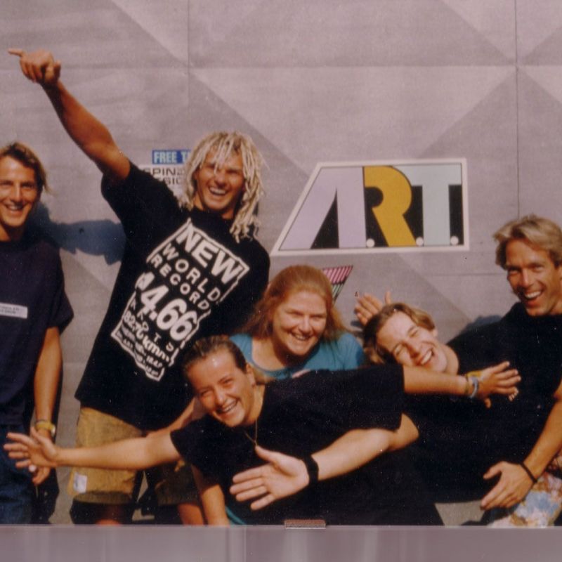 Sehr gerne! Also die Marke A.R.T. wurde geboren, als Udo Schultz für seine Boardmarke Fanatic eine Segelmarke als Partner suchte. North Sails bewarb sich damals um eine Kooperation, aber Udo wollte eine für sich bessere Lösung finden. 1986 bekam ich das Angebot bei A.R.T. Segeldesigner zu werden, nachdem ich Neilpryde verlassen hatte. Elf Jahre lang arbeitete ich dann für A.R.T., bis sich der Windsurfmarkt in den früher 90ern stark veränderte. Alle Marken mussten das Produktionsvolumen reduzieren. A.R.T. sah eine Möglichkeit Kosten zu sparen, indem ich entlassen wurde und Robert Stroj ab 1996 meine Funktion übernahm. 1997 war dann Schluss mit der Marke A.R.T.
