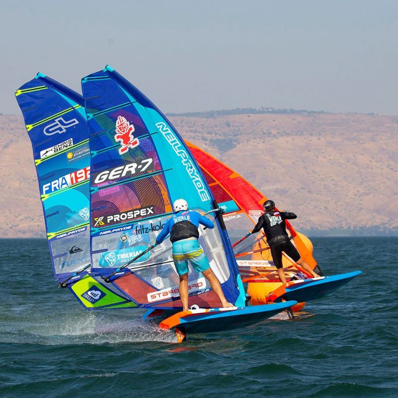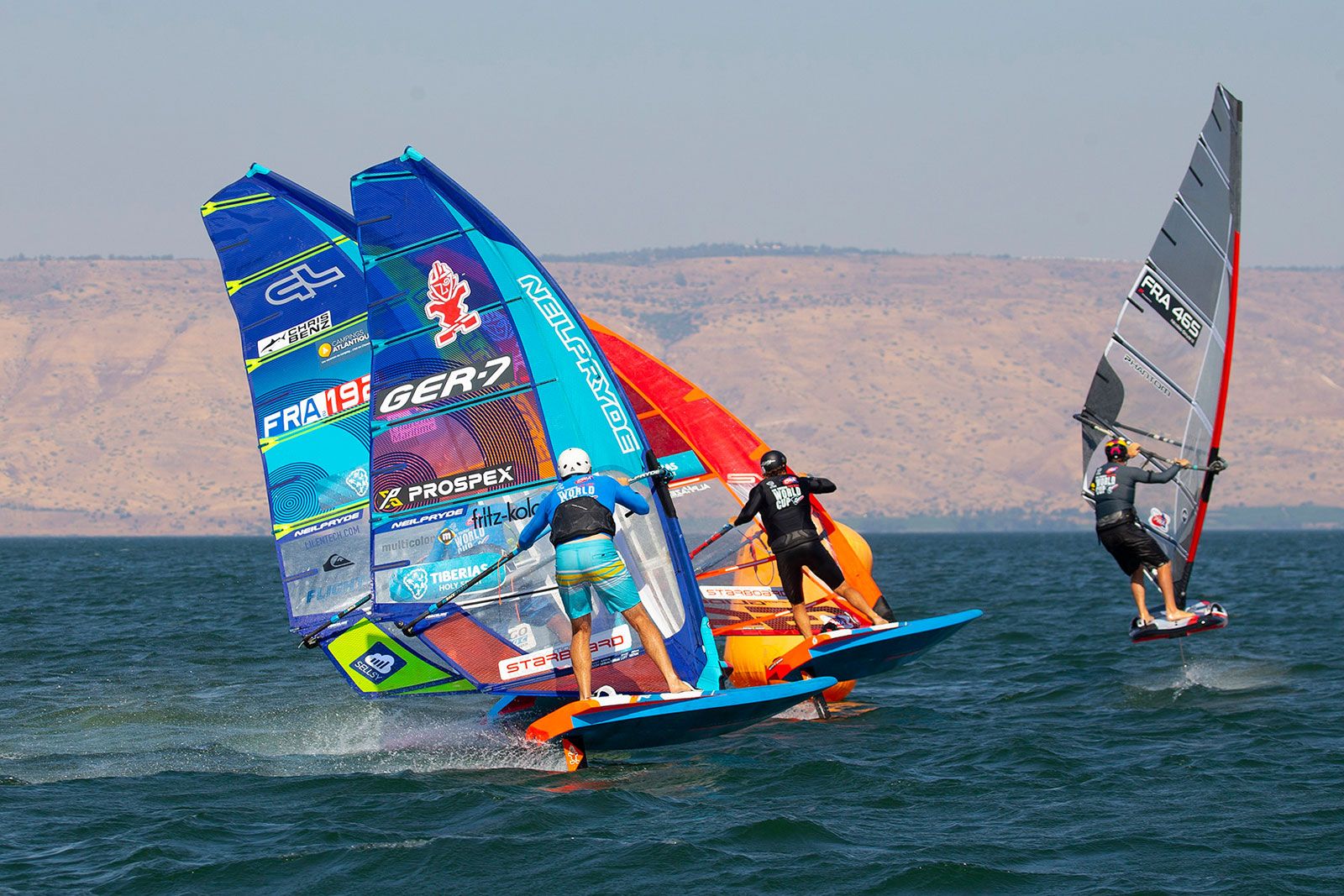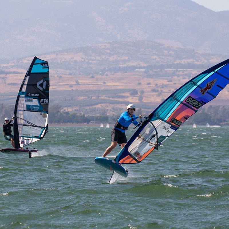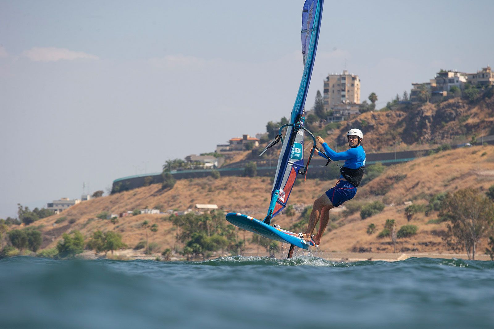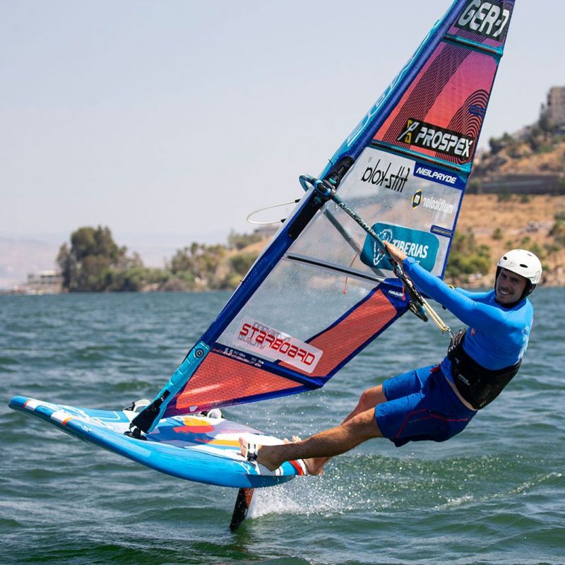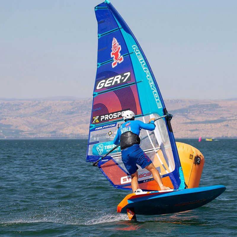 Ja, die Bretter müssen wohl gut sein, ne (lacht)? Kleiner Flachwitz an dieser Stelle! Nein, also wir haben auch untereinander natürlich debattiert und viele hatten einfach die Meinung, dass ich ja jetzt keinen Leistungsdruck mehr habe, und sich das positiv auswirkt. Davon kommt aber natürlich nicht die Leistung selbst. Um es ganz einfach zu sagen, ich fühle mich mega wohl auf den Brettern, das läuft alles. Die Brett-Segel-Kombi funktioniert wahrscheinlich auch echt gut. Ich hatte vielleicht nicht so ein intensives Training wie in den letzten Jahren immer, aber an den Tagen, die ich dann mal trainiert habe, habe ich gemerkt: Das läuft irgendwie alles! Ich bin ziemlich schnell unterwegs, und wenn ich einigermaßen gute Starts raushaue und fehlerfrei über den Kurs fahre, dann geht da auch auf jeden Fall was. Auch die Bedingungen auf dem See Genezareth haben mir sehr gut gepasst.