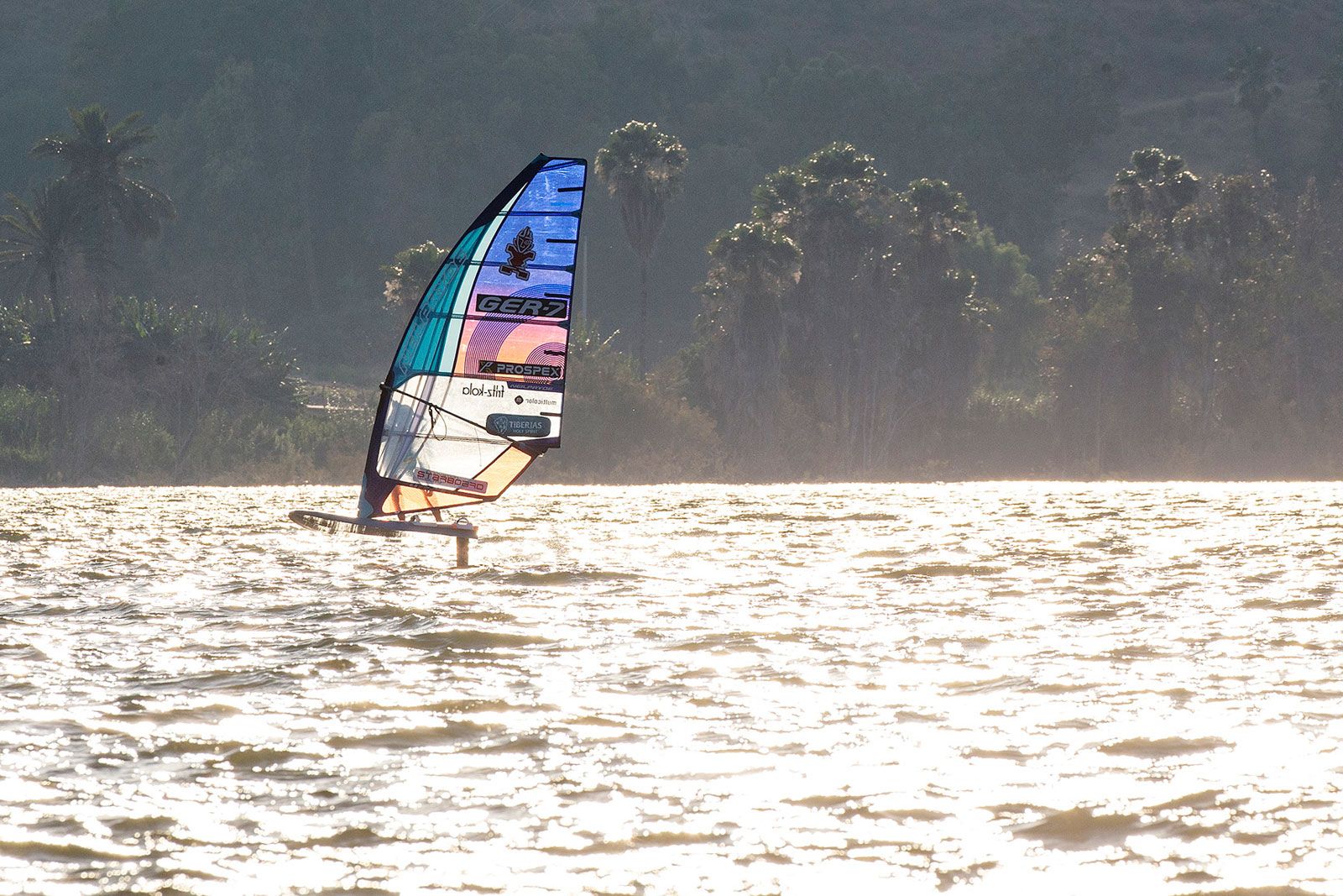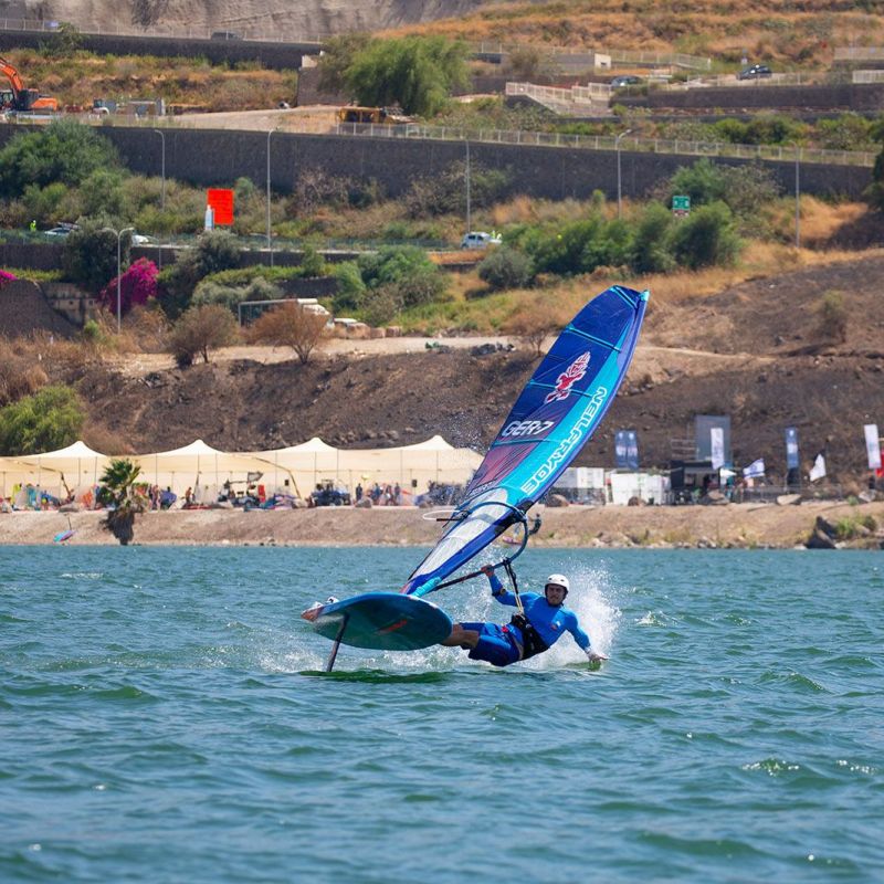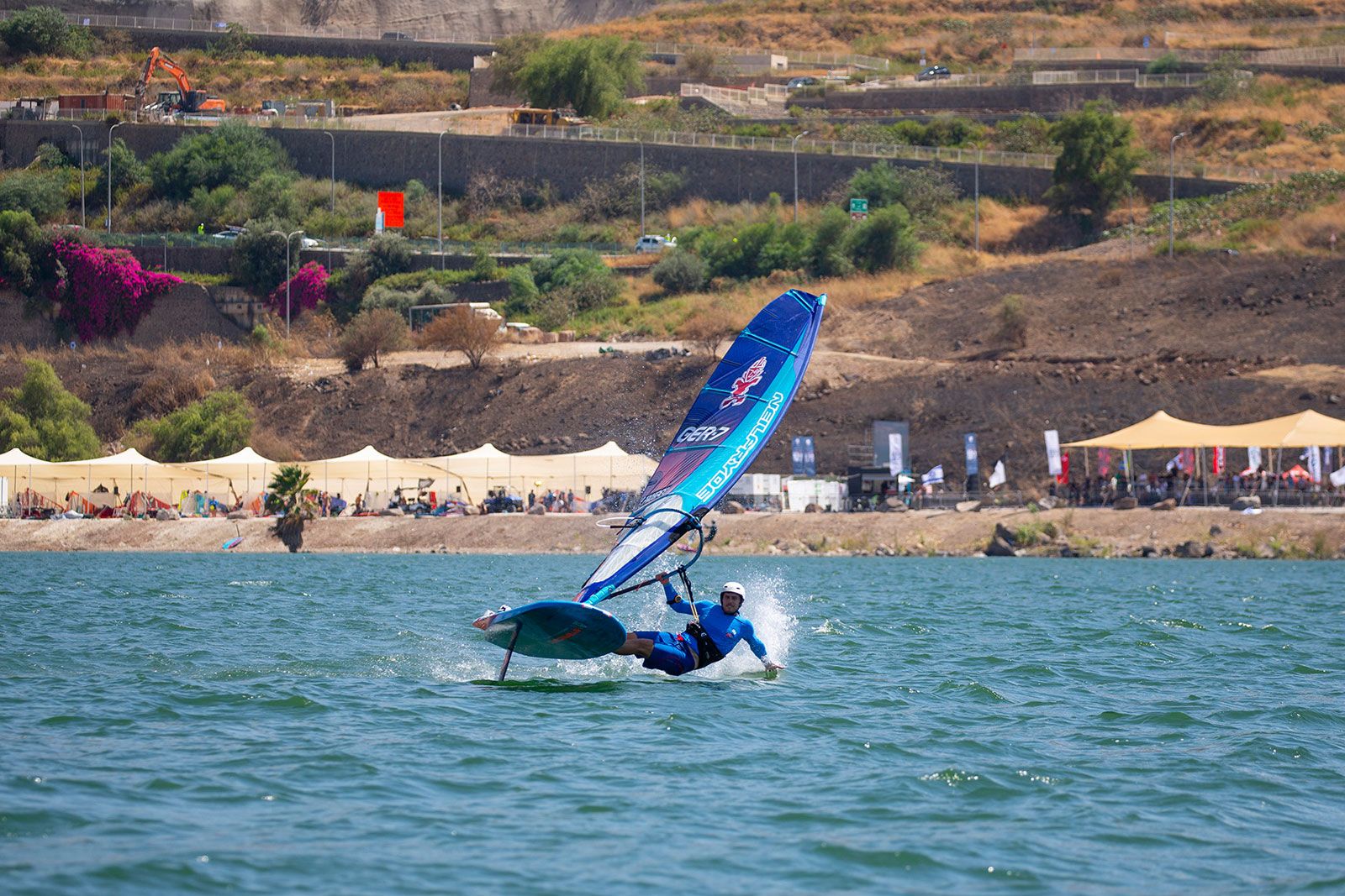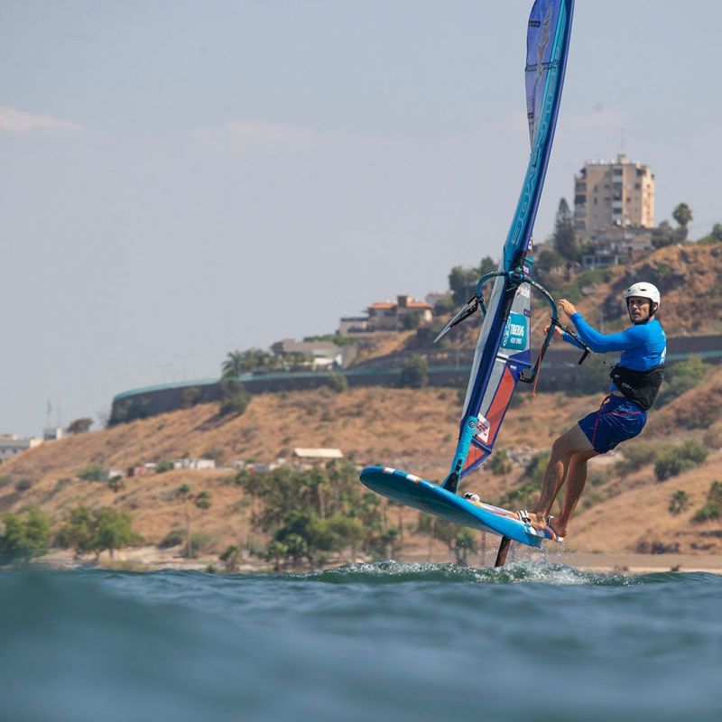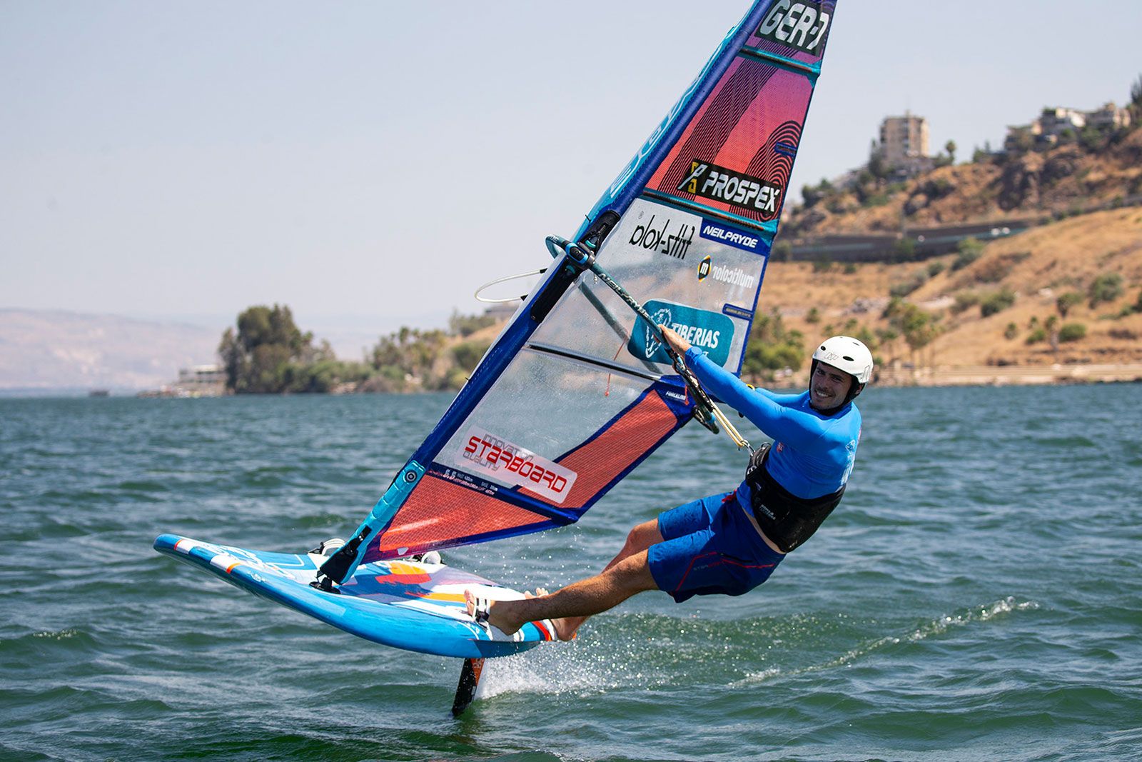 Ja, die Bretter müssen wohl gut sein, ne (lacht)? Kleiner Flachwitz an dieser Stelle! Nein, also wir haben auch untereinander natürlich debattiert und viele hatten einfach die Meinung, dass ich ja jetzt keinen Leistungsdruck mehr habe, und sich das positiv auswirkt. Davon kommt aber natürlich nicht die Leistung selbst. Um es ganz einfach zu sagen, ich fühle mich mega wohl auf den Brettern, das läuft alles. Die Brett-Segel-Kombi funktioniert wahrscheinlich auch echt gut. Ich hatte vielleicht nicht so ein intensives Training wie in den letzten Jahren immer, aber an den Tagen, die ich dann mal trainiert habe, habe ich gemerkt: Das läuft irgendwie alles! Ich bin ziemlich schnell unterwegs, und wenn ich einigermaßen gute Starts raushaue und fehlerfrei über den Kurs fahre, dann geht da auch auf jeden Fall was. Auch die Bedingungen auf dem See Genezareth haben mir sehr gut gepasst.