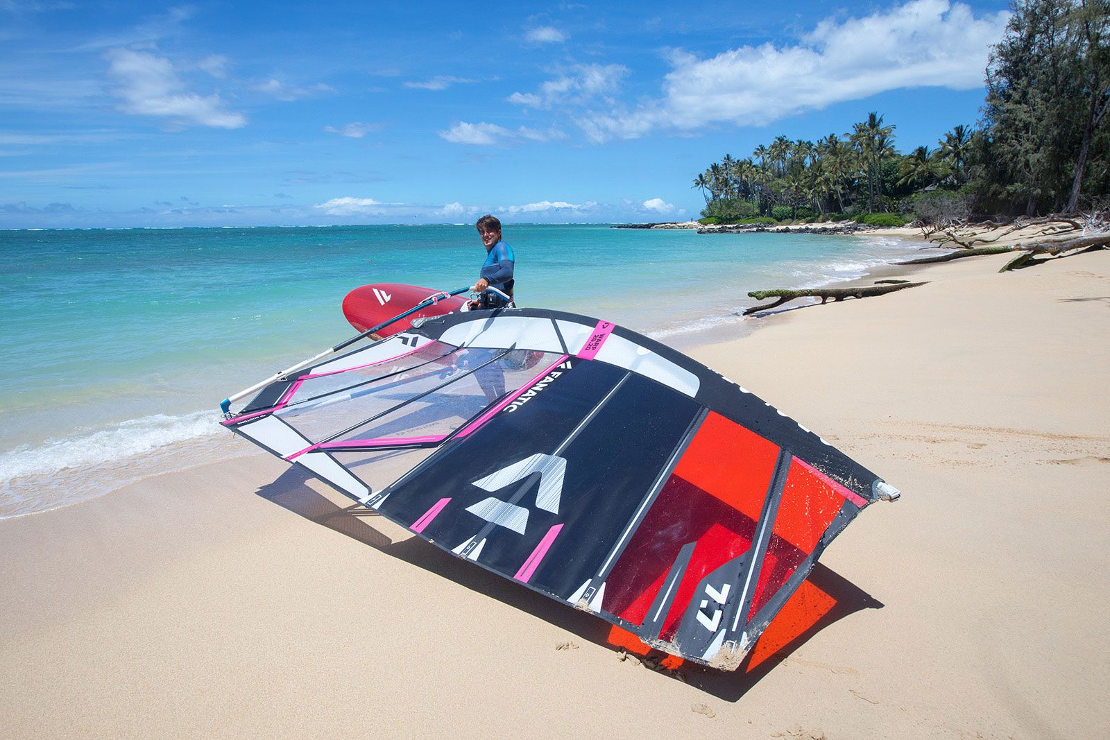 Ehrlich gesagt: ich habe noch nie so geweint! Der Moment war einfach der absolute Wahnsinn! All diese Rennen, Eliminations, Höhen und Tiefen, alles entscheidet sich in einem finalen Moment... und dieses Mal positiv für mich! Es war super, das mit ein paar meiner Freunde und der ganzen französischen Crew vor Ort zu feiern! Als ich an den Strand reingefahren bin, haben die alle geschrien wie noch nie! Mein Kumpel Marco Lang, der mir echt geholfen hat, meine Schwester Marion, die bei dem Event super drauf war (sie gewann das Event der Frauen in Neu Kaledonien, Anm. d. Red.) und mir wertvolle Tipps geben konnte, all diese Kids, die am Strand auf mich gewartet haben. Es war einfach großartig, diesen Titel auch noch bei einem französischen World Cup feiern zu können, denn so war es noch schöner, den Sieg mit den Leuten vor Ort zu feiern. Das einzige, was ein bisschen schade war, war dass mein Sohn, meine Frau und meine Eltern nicht dabei sein konnten, weil die meine allergrößte Unterstützung sind. Aber ich hatte sie sofort am Telefon, um diesen besonderen Moment mit ihnen zu teilen. Das Finale war super spannend, aber ich hatte einfach ein gutes Gefühl und war mega konzentriert. Ich habe erst an der vorletzten Halse realisiert, dass ich in Führung liege und habe versucht, nicht zu denken, sondern einfach zu fahren. Als ich die letzte Halse gefahren war, konnte ich nur noch geradeaus aufs Ziel gucken.