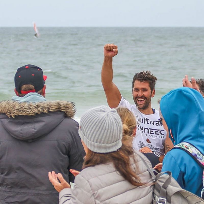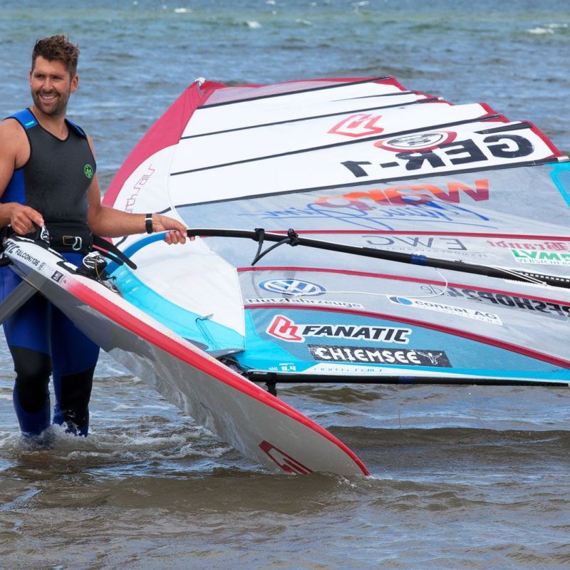 Das ist tatsächlich gar nicht so einfach. Deren Mindest-Abnahmemenge ist wirklich utopisch hoch. Darunter fangen die nicht einmal an für dich zu produzieren. Das heißt, dass ich da Bewerbungen hingeschrieben habe, ich habe da angerufen aber die Reaktionen waren natürlich immer: „Ne, auf euch haben wir keinen Bock.“ Aber irgendwann habe ich mir wieder für 4h einen Wecker gestellt und da angerufen, und auf einmal hatte ich den obersten Chef der Firma am Telefon. Ich hab ihm dann die ganze Sache erklärt - Profi-Windsurfer, Formula-Weltmeister, dass ich Jugendarbeit mache und, dass wir etwas gutes tun wollen, indem wir ein richtig geiles Produkt machen. Und der hat dann tatsächlich gesagt: „Ok, bei dir machen wir eine Ausnahme!“ Und nur dadurch sind wir überhaupt bei denen gelandet.