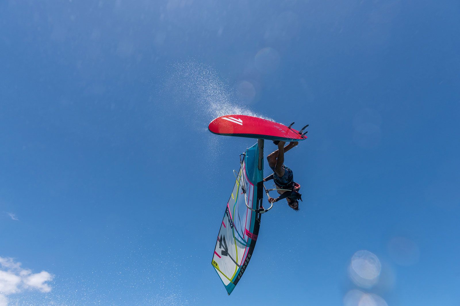 Das ist eine gute Frage! Natürlich versuche ich jeden Tag, meine Manöver so konstant und trotzdem so radikal wie möglich zu springen und das wenn möglich in den verschiedensten Bedingungen die ich nur finden kann. Wenn es um die direkte Vorbereitung für einen anstehenden Wettkampf und die anstehende Saison geht, dann simuliere ich auch sehr oft einen Heat. Ich versuche dann in der vorgegebenen Zeit bestimmte Sprünge und Manöver in der Welle zu landen und das immer wieder. Bevor die erste Corona Saison abgesagt worden ist, habe ich fast nur noch Heats simuliert, ich war richtig gut drauf und habe mich so sehr gut vorbereitet gefühlt. In Zeiten in denen es wie aktuell eher weniger Events gibt, gehe ich dann auch oft einfach mal so aufs Wasser um ein bisschen Spaß zu haben und das Windsurfen als Sport und den Einklang mit den Elementen zu genießen.