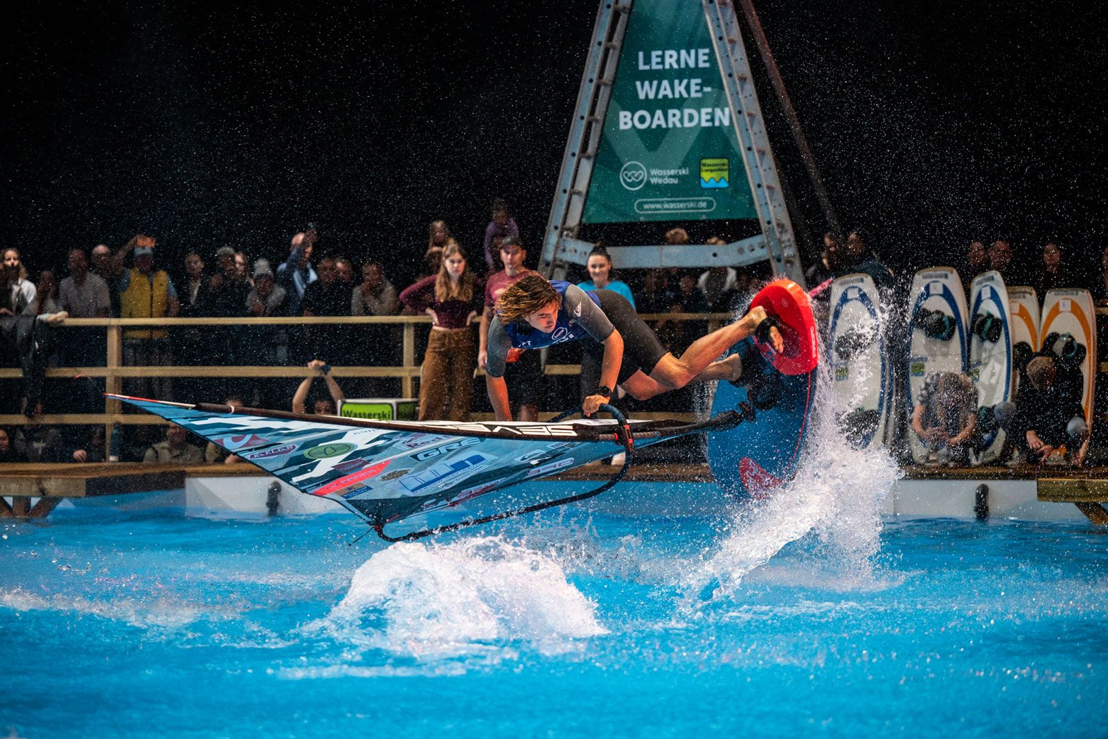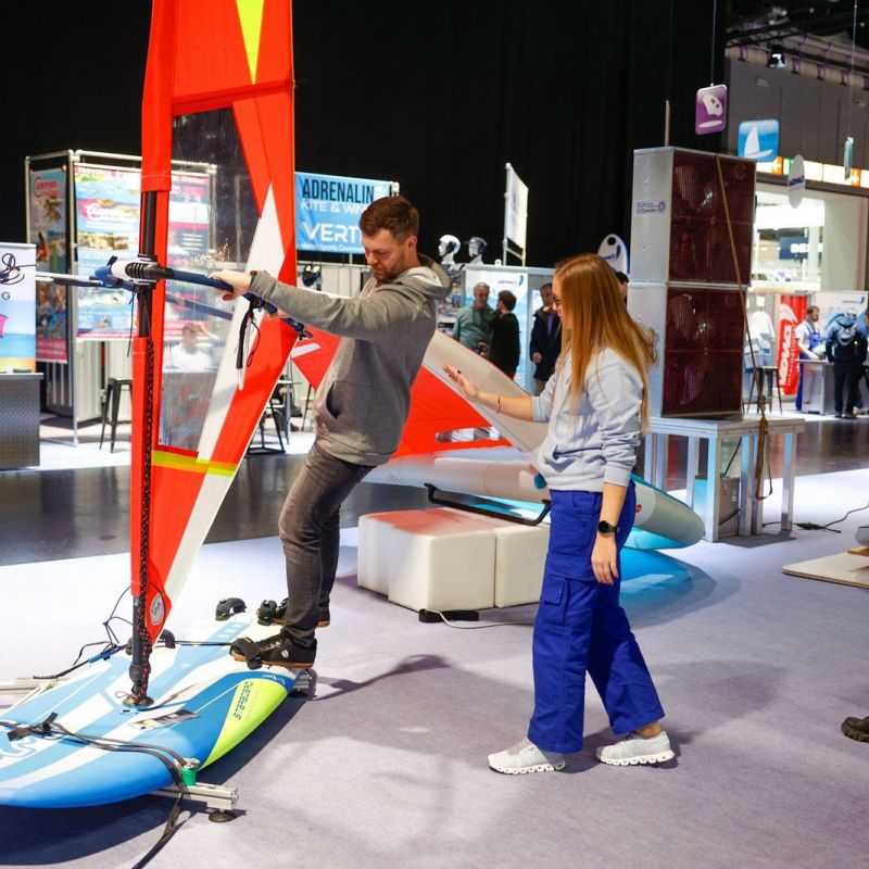 - Der Einstieg ins Windsurfen, angetrieben von 82 Windmaschinen, nach einer Einführung am Surf-Simulator in Kooperation mit dem Verband Deutscher Wassersportschulen VDWS e.V.