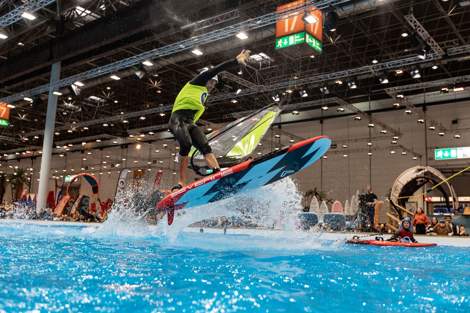 Damit Surferinnen und Surfer und Winger und Wingerinnen noch besser zeigen können, was mit den neuen Boards, Segeln und Wings möglich ist, wird 2024 in der Halle 17 ein stärkerer Wind wehen. 82 Turbinen sorgen für Action und spektakuläre Sprünge durch die Luft.