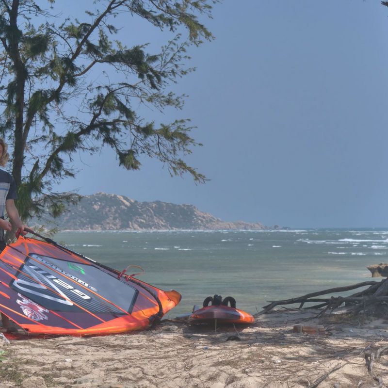 Wenn man Julian über Vietnam reden hört, dann ist es in seinem Wortlaut ganz klar "eine Roughe Angelegenheit". Von insgesamt 90 Tagen seines Aufenthalts schlief er 88 in einem Zelt mitten in der Einöde an Vietnams Küste, zwei Übernachtungen mit festem Dach über dem Kopf waren nur einem Taifun geschuldet. Was sich anhört wie ein Bear Grylls Survival Trip war eine Windsurferfahrung sondergleichen.